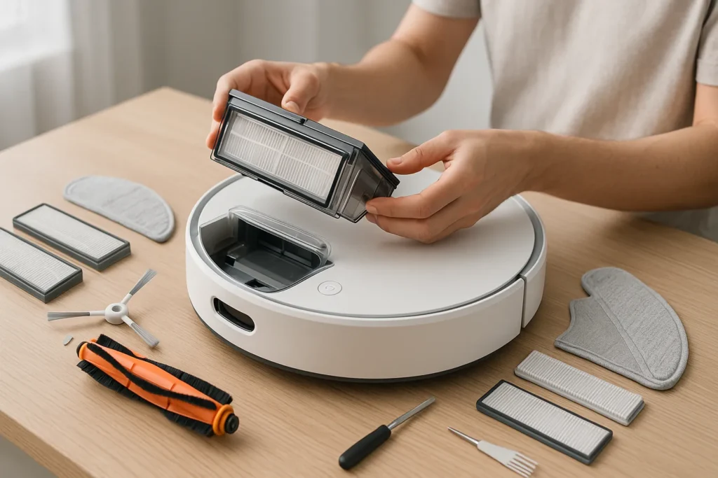 Un aspect pe care mulți cumpărători îl trec cu vederea este întreținerea robotului. Chiar dacă pare un detaliu minor, în realitate influențează mult costul total de utilizare și confortul pe termen lung.